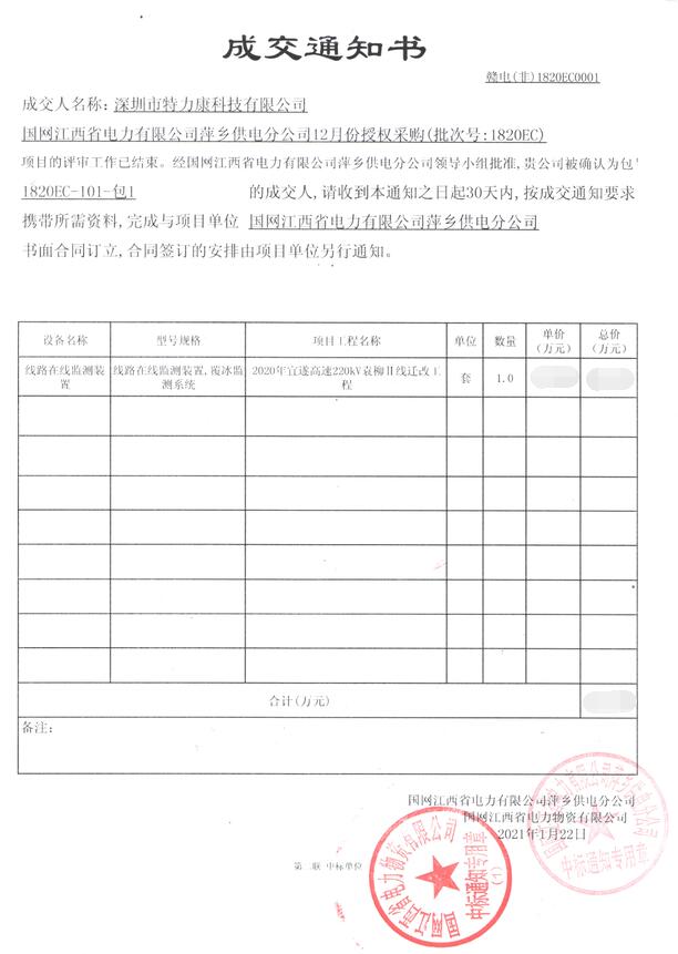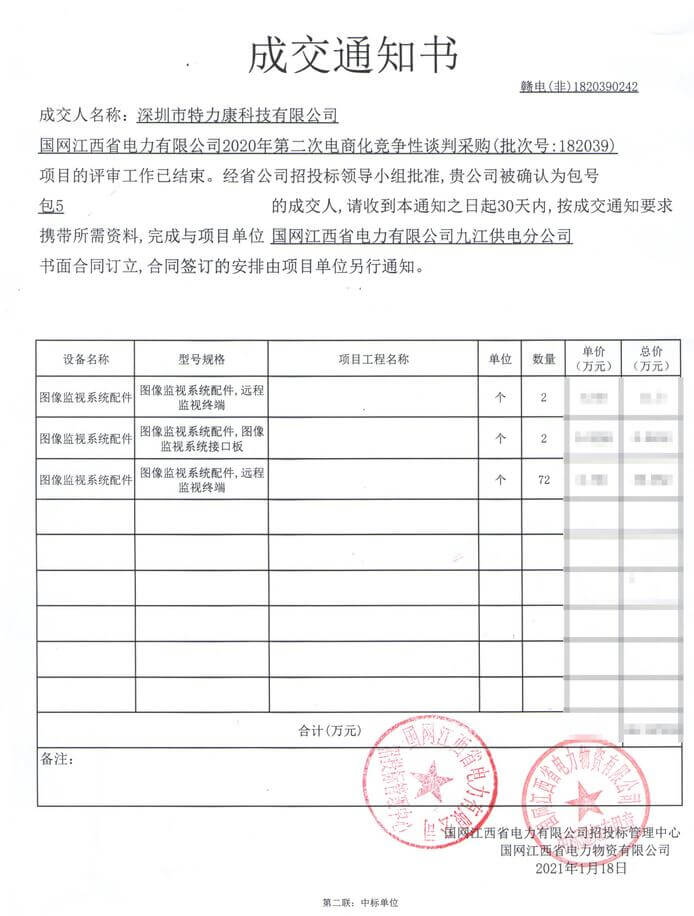 特力康中標(biāo)國(guó)網(wǎng)黑龍江送變電工程公司的2024年度第18次物資類競(jìng)爭(zhēng)性談判采購(gòu)項(xiàng)目——慶陽驅(qū)鳥器物資框 特力康中標(biāo)國(guó)網(wǎng)甘肅省電力公司省管產(chǎn)業(yè)單位2024年第五次物資競(jìng)爭(zhēng)性談判授權(quán)采購(gòu)項(xiàng)目 中標(biāo)喜訊:深圳市特力康科技有限公司成功入圍許繼集團(tuán)綜合能源公司輸電線路視頻在線監(jiān)測(cè)裝置模塊集采項(xiàng)目 中標(biāo)喜訊:特力康成功中標(biāo)國(guó)網(wǎng)重慶市電力公司渝中一片區(qū)項(xiàng)目 特力康成功中標(biāo)國(guó)網(wǎng)天津市電力公司2024年第二次?物?資招標(biāo)項(xiàng)目 特力康中標(biāo)國(guó)網(wǎng)安徽省電力有限公司蕪湖供電公司2024年3月非物質(zhì)采購(gòu)項(xiàng)目 精準(zhǔn)捕捉 “微氣象”:浙江電力用特力康預(yù)警系統(tǒng)筑牢電網(wǎng)氣候防線 守護(hù) “電力咽喉”:湖南電力投用百套特力康三跨 4G 監(jiān)控球,筑牢安全防線 貴州電力裝特力康電網(wǎng)架空線路覆冰監(jiān)測(cè)系統(tǒng),精準(zhǔn)防冰保電網(wǎng)過冬? 百套落地山西電網(wǎng)!特力康輕量化輸電架空線路監(jiān)拍裝置,筑牢輸電安全網(wǎng) 破解采空區(qū)隱患:山西電力裝特力康通用型監(jiān)測(cè)裝置,守鐵塔穩(wěn)運(yùn)行 四川電力用特力康架空輸電線路山火監(jiān)測(cè)裝置,筑牢林區(qū)輸電 “防火墻”? 遼寧電力啟用特力康多視角監(jiān)拍裝置,全維度守護(hù)輸電安全? 破解黃土高原沉降難題:山西電力用特力康北斗裝置守桿塔安全? 寧夏配電線路安裝了我司防外破電子化智能警示牌